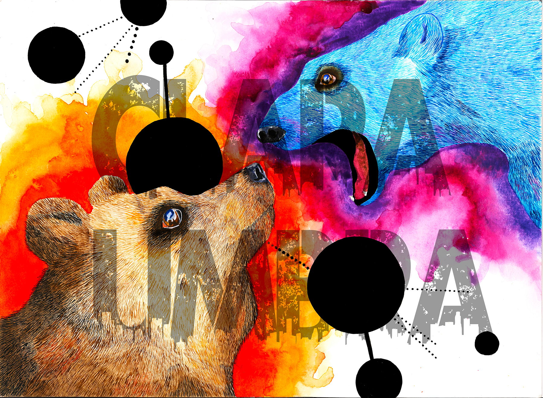 Golden brown bear facing off with the Ice Lord of the north. Both represent strength, courage and endurance.