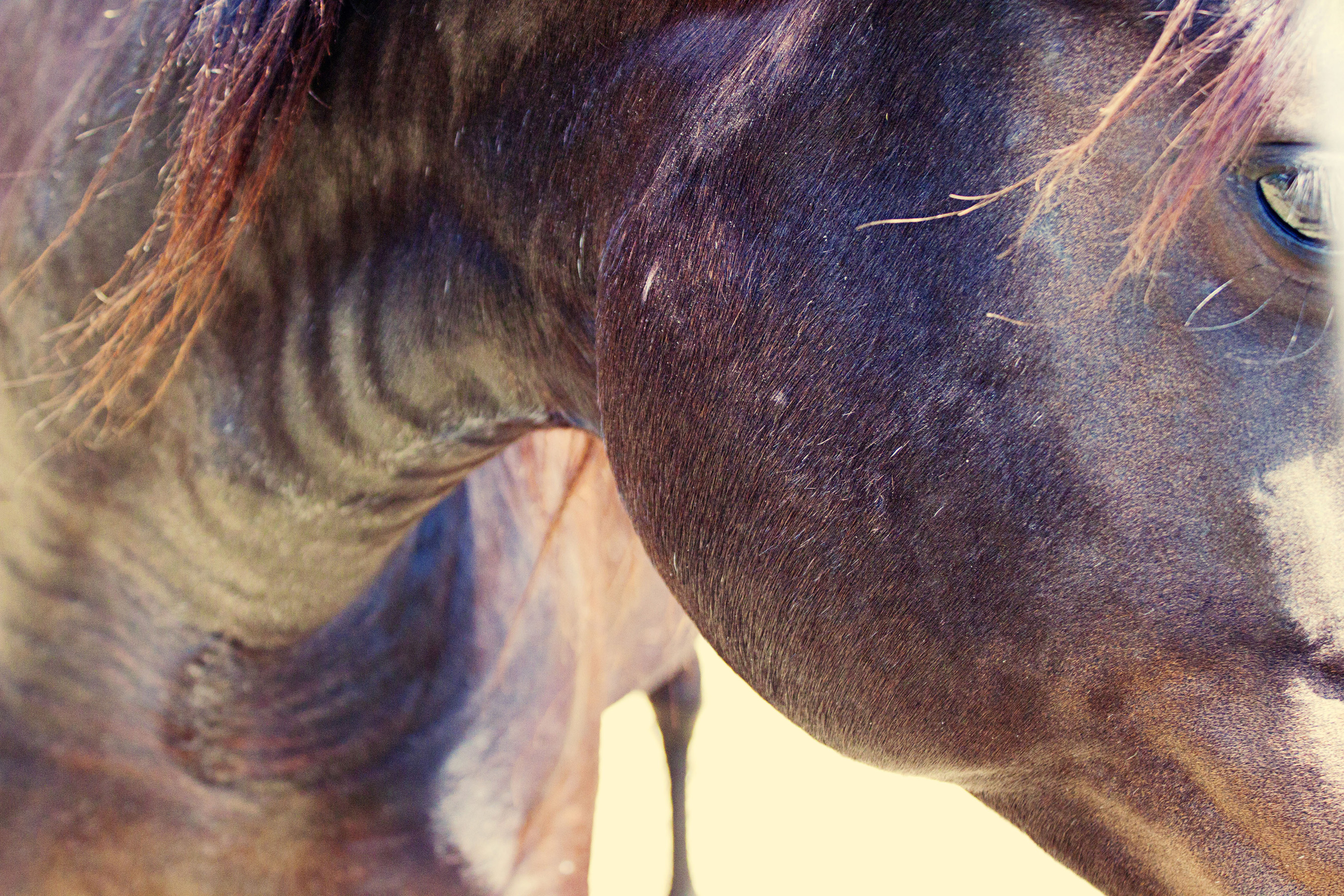 Melody, an elegant and elusive Al Khamsa Arabian mare. She bends in and out of our minds like a tune carried on the wind. Abstract notes in washes of purples and mahogany.